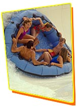 feet tall. Gigantic multi-person rafts wind and twist through steep