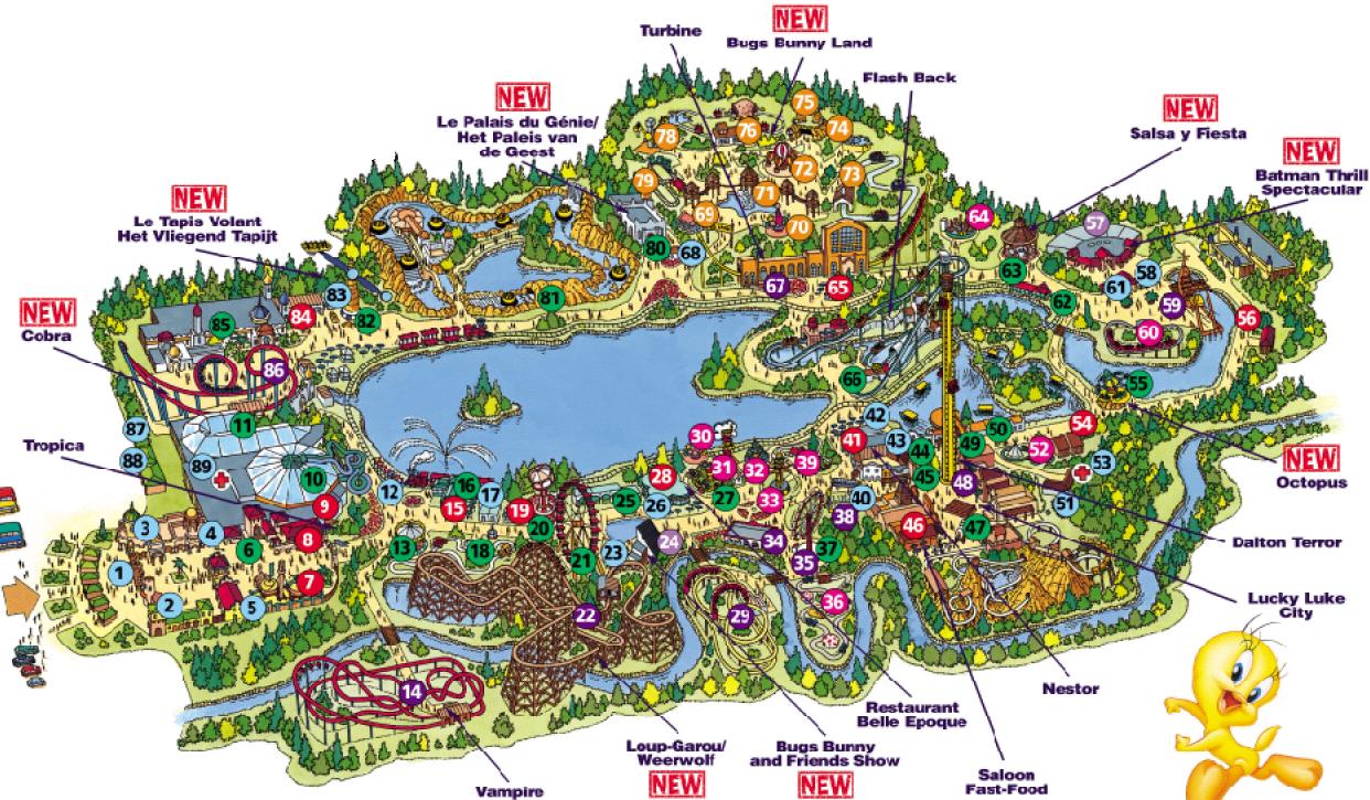 themed areas are Bugs Bunny Land (for the children), Italy and Caraibes.